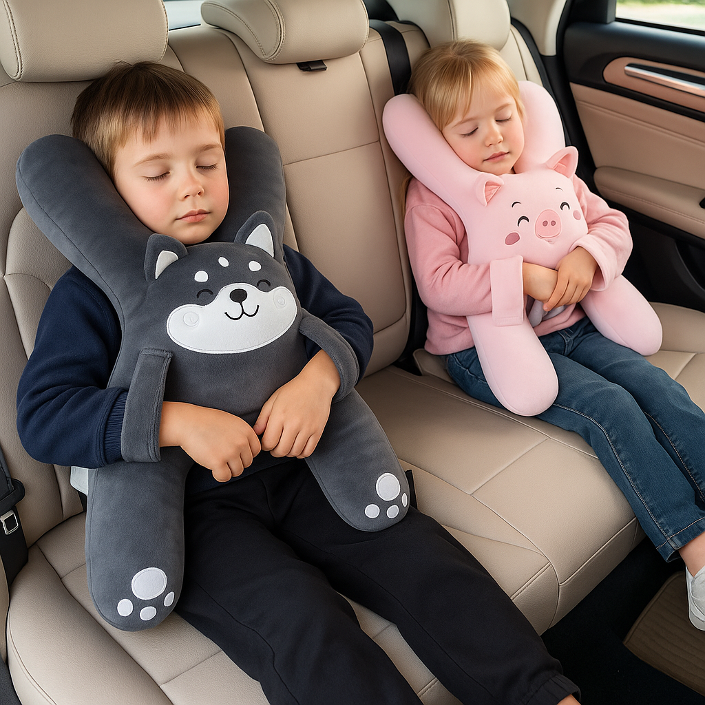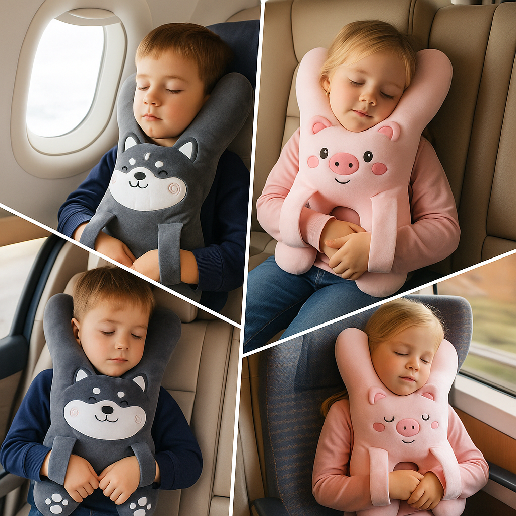 Mit unserem kuschelweichen Reisekissen schläft dein Kind überall so entspannt wie zuhause. Die ergonomische Form stützt Kopf und Nacken sanft, während das liebevolle Tierdesign Geborgenheit schenkt – für ruhige Fahrten und glückliche Elternmomente.